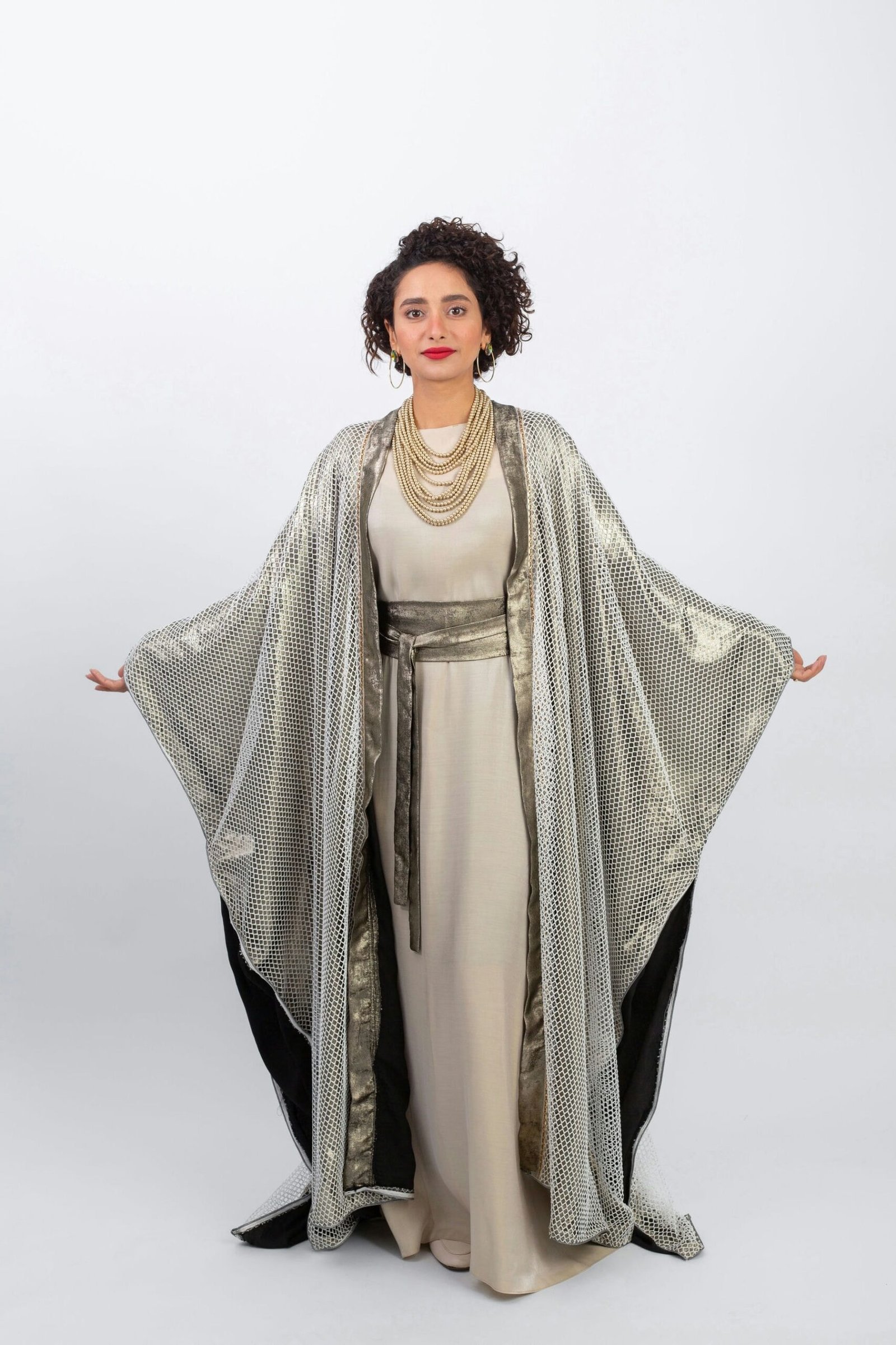 This metallic gold kaftan is perfect for glamorous evenings. Its unique white pattern adds a touch of elegance, while the gold fabric catches the light for a stunning effect. Made with high-quality materials, this koftan is both luxurious and comfortable, making it a must-have for any fashion-forward individual.